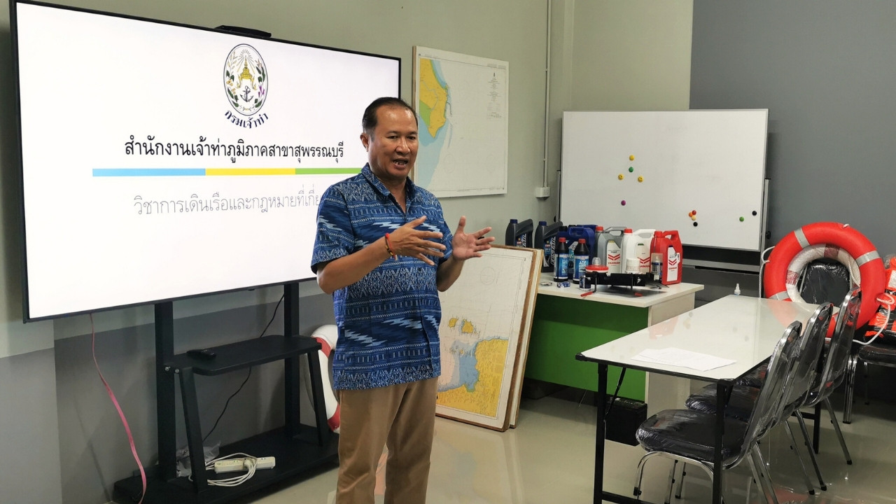 • ภาคเช้า เป็นการอบรมวิชากฎหมายที่เกี่ยวข้องกับการใช้เรือ โดยสำนักงานเจ้าท่าภูมิภาค สาขาสุพรรณบุรี และทำการสอบให้กับผู้เข้ารับการอบรมเพื่อขึ้นทะเบียนเพื่อรับใบอนุญาตใช้เรือทั้งใบนายท้ายเรือและใบคนคุมเครื่องจักรเรือ รวมถึงการจดทะเบียนเรือให้ผู้สำเร็จการศึกษาในรุ่นก่อนหน้านี้ที่มีความประสงค์นำเรือมาจดทะเบียนเพื่อใช้เรือให้ถูกต้อง
