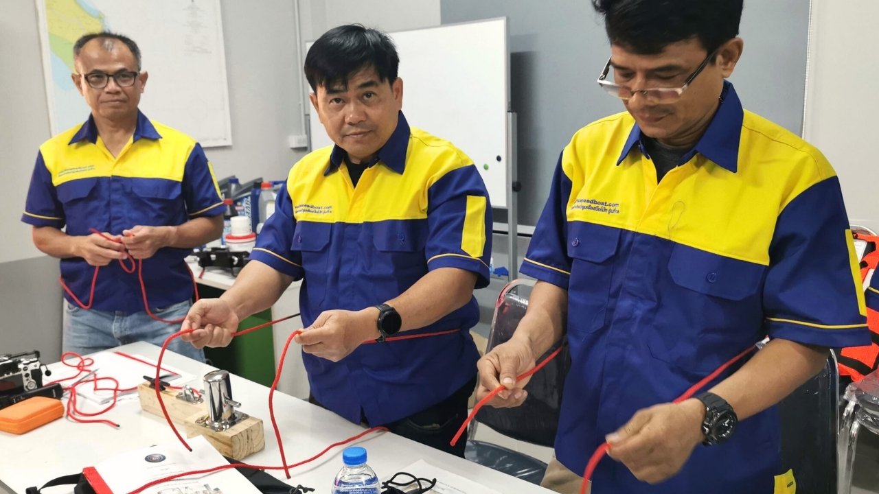 วันที่ 1 ของการอบรม หลักสูตรพื้นฐานของไทยสปีดโบ๊ทในรุ่นที่ 18 เน้นความรู้และทักษะพื้นฐานเกี่ยวกับการใช้เรือ และตรวจสอบเครื่องยนต์เรือและระบบไฟฟ้าภายในเรือเบื้องต้น ฯลฯ
