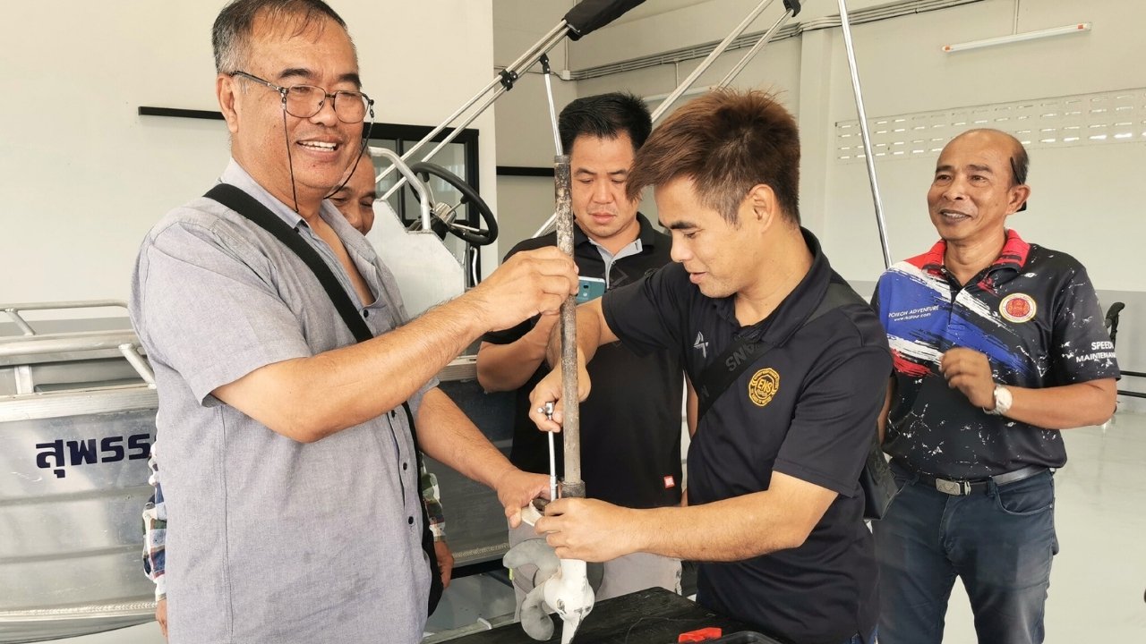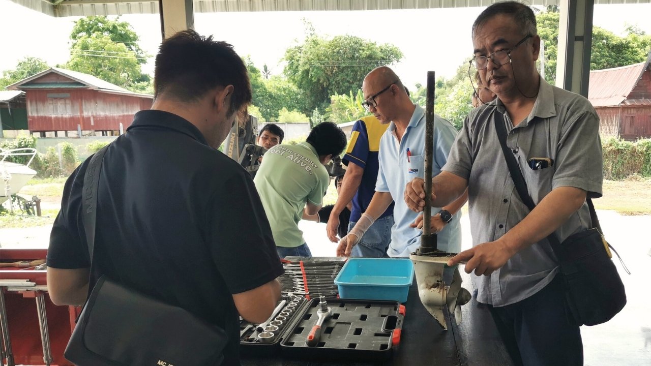 วันที่ 2 ของการอบรม เน้นความรู้และทักษะพื้นฐานเกี่ยวกับการซ่อมบำรุงเครื่องยนต์เรือสปีดโบ๊ท เช่น การเปลี่ยนชุดเกียร์ การเปลี่ยนยางพัดน้ำ การเปลี่ยนถ่ายน้ำมันเครื่อง เป็นต้น